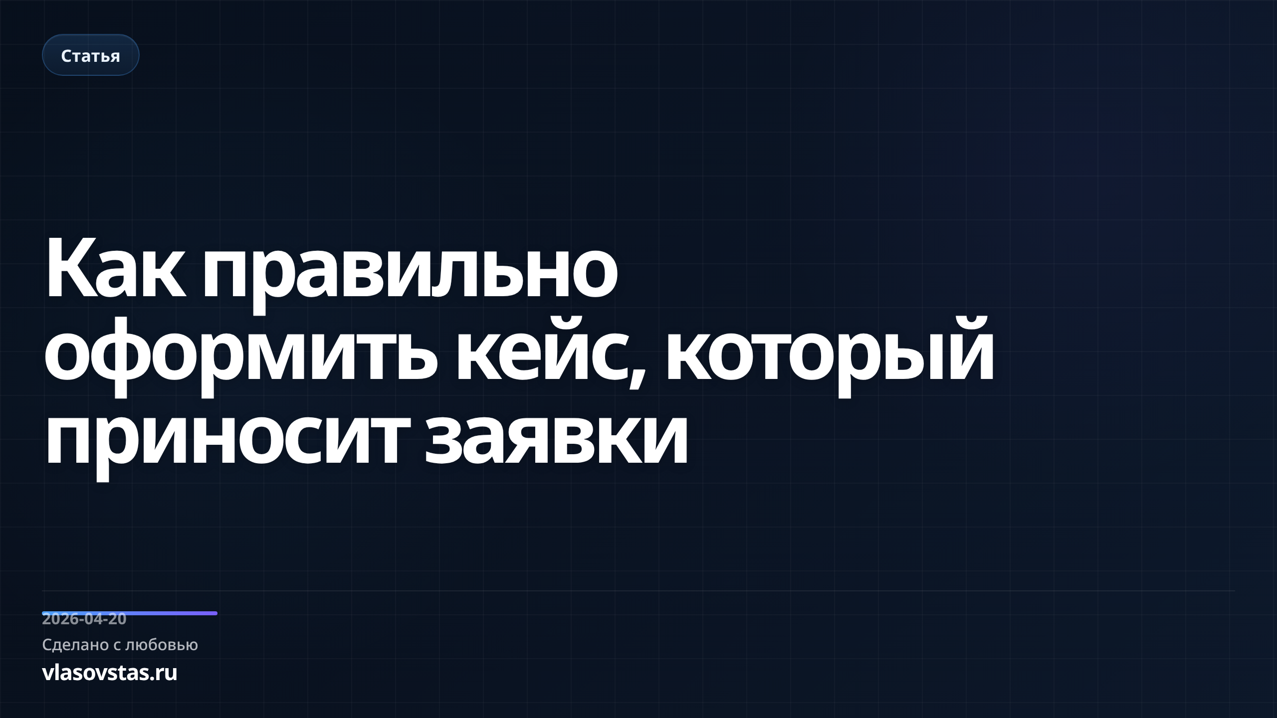 - Завершите кейс четким CTA: «Хотите так же? Напишите в Telegram — @codebystas».
